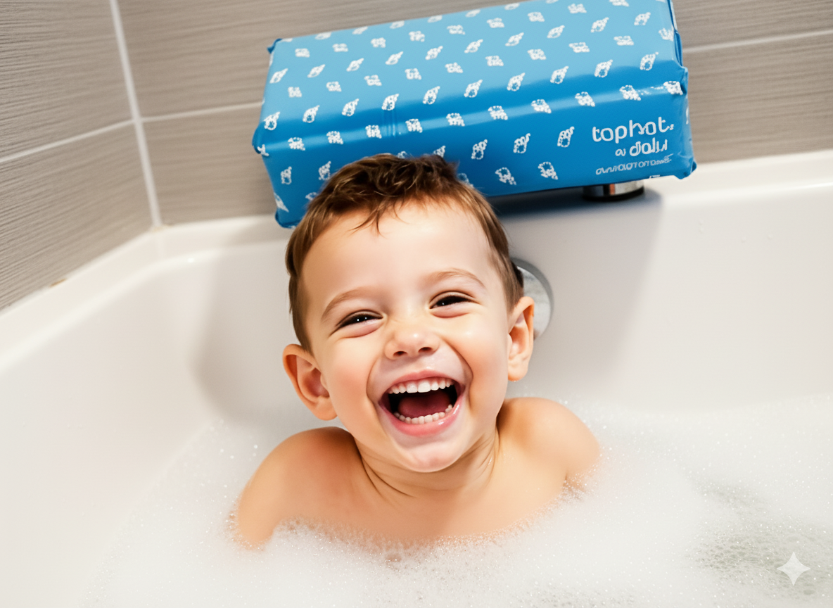 Fitting your taphat® is quick and easy. Designed to snugly wrap around most bath taps, it stays secure while keeping little ones safe. Watch the video to see just how simple it is to install.